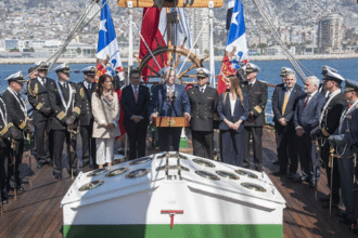 El Presidente José Antonio Kast encabezó este miércoles la ceremonia de despedida del Buque Escuela Esmeralda en Valparaíso, marcando el inicio de su 70° Crucero de Instrucción correspondiente al año 2026. La actividad contó con la presencia de la primera dama, María Pía Adriasola, el ministro de Defensa, Fernando Barrios, y diversas autoridades, quienes participaron de una jornada que incluyó…