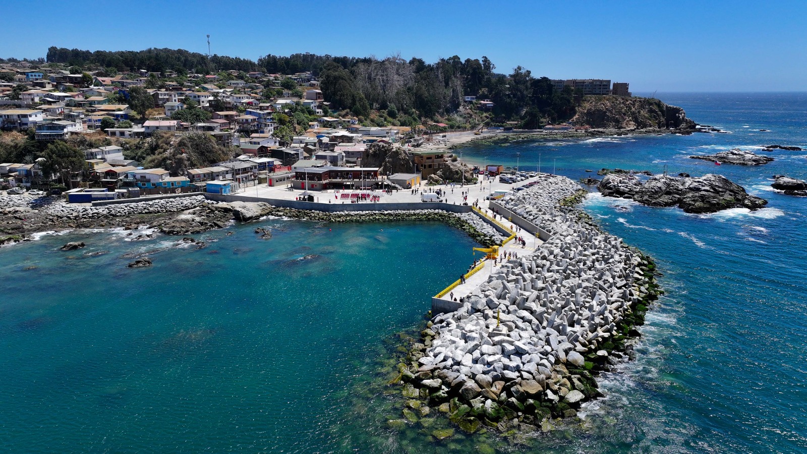 Horcón, 3 de diciembre de 2025.- La ministra de Obras Públicas, Jessica López, acompañada del subsecretario MOP, Danilo Núñez; del delegado presidencial de Valparaíso, Yanino Riquelme, lideró este martes la ceremonia de inauguración de la nueva Caleta de Horcón. La Caleta Horcón es parte del Plan de 17 caletas comprometidas por el Presidente Boric y significa una inversión de más de 10 mil millones de pesos.
