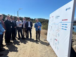 Junto al gerente general de Esval, José Luis Murillo, el secretario de Estado conoció en terreno el funcionamiento de la conducción reversible Los Aromos–Concón, una megaobra única en Sudamérica, que permite recargar el embalse en invierno desde el río Aconcagua y utilizar el recurso almacenado en verano, cuando la demanda aumenta.
